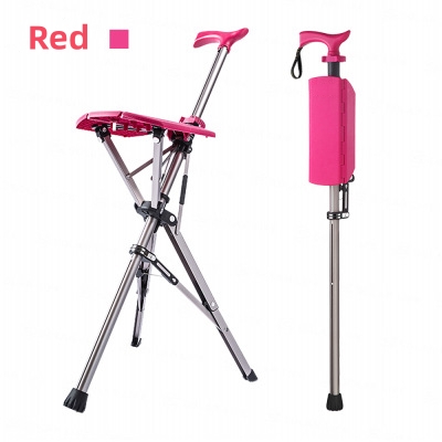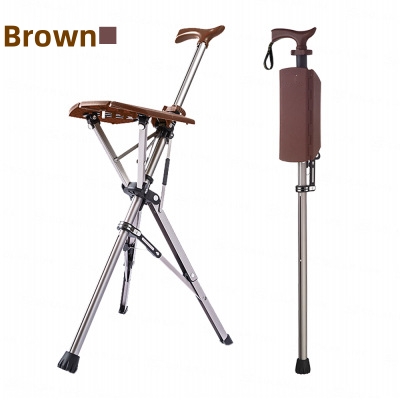 Scaun portabil pliabil cu cârjă --- Design realizat manual în Germania, reglabil pe înălțime, potrivit pentru utilizarea mobilă pentru persoanele în vârstă